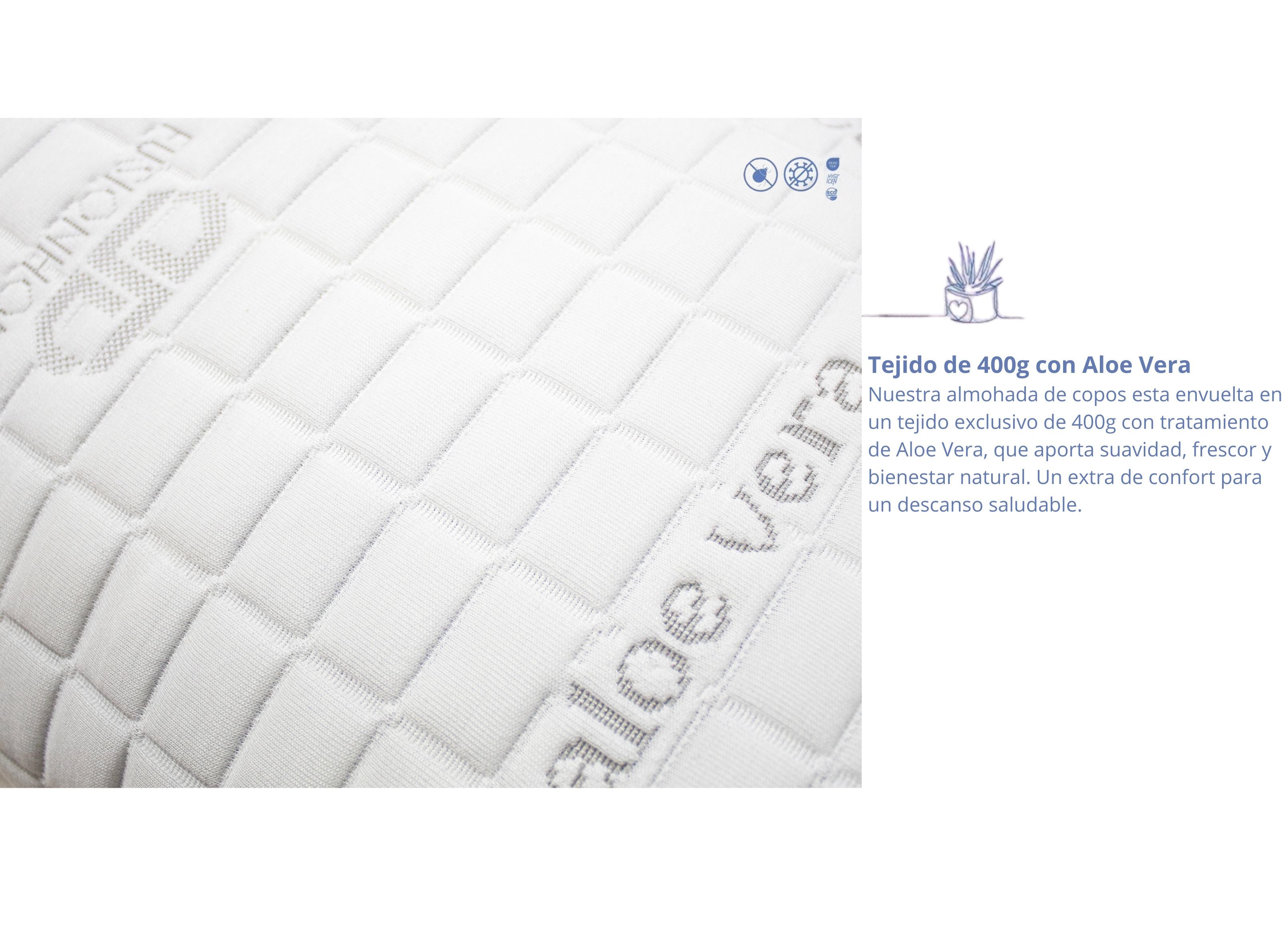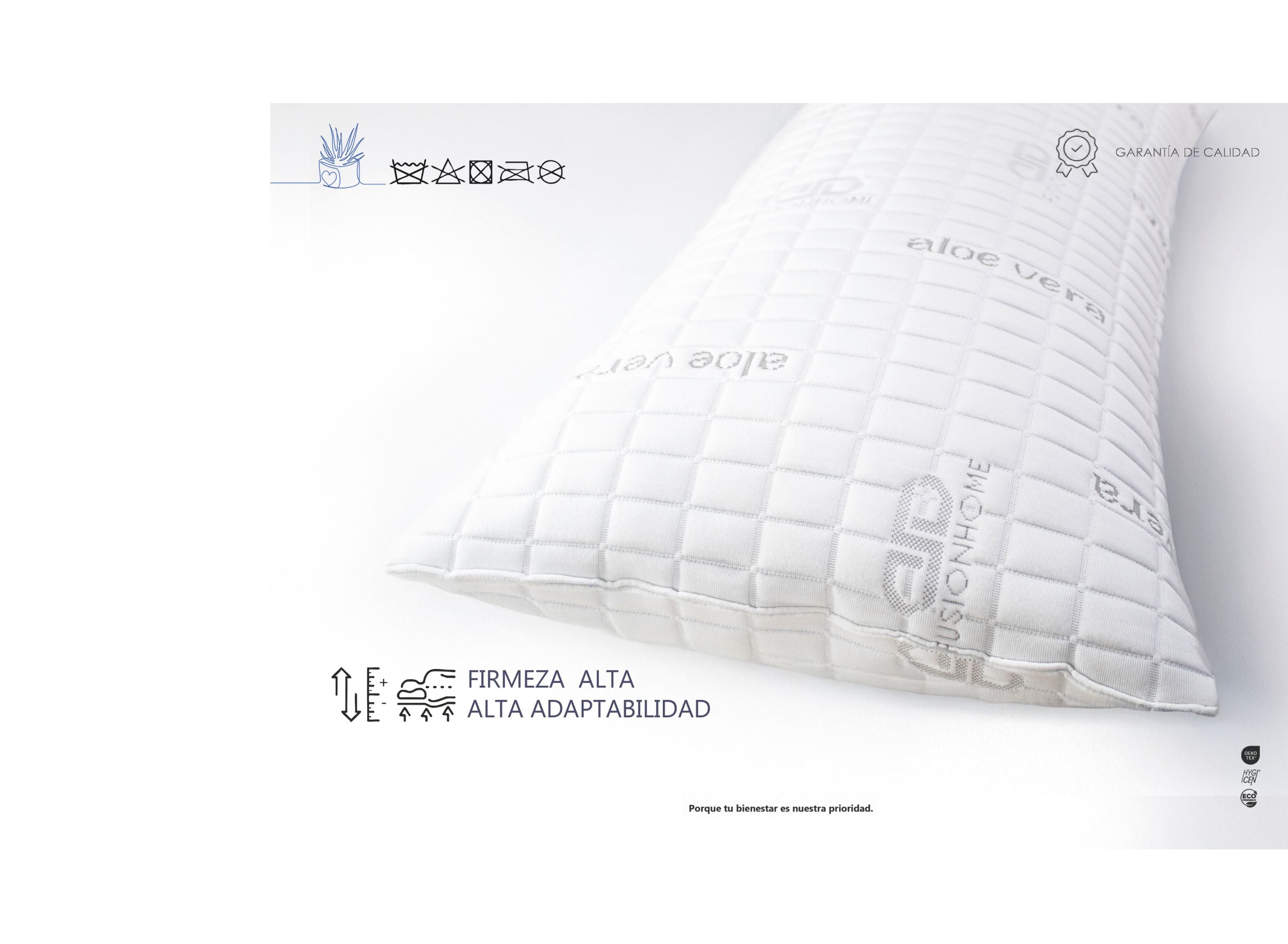 Soporte Híbrido y Adaptable: Combina la suavidad y volumen de la fibra con la consistencia y soporte de los copos para crear un producto que se adapta a cualquier postura, mantiene la alineación perfecta de cabeza y cuello, y no pierde su forma.